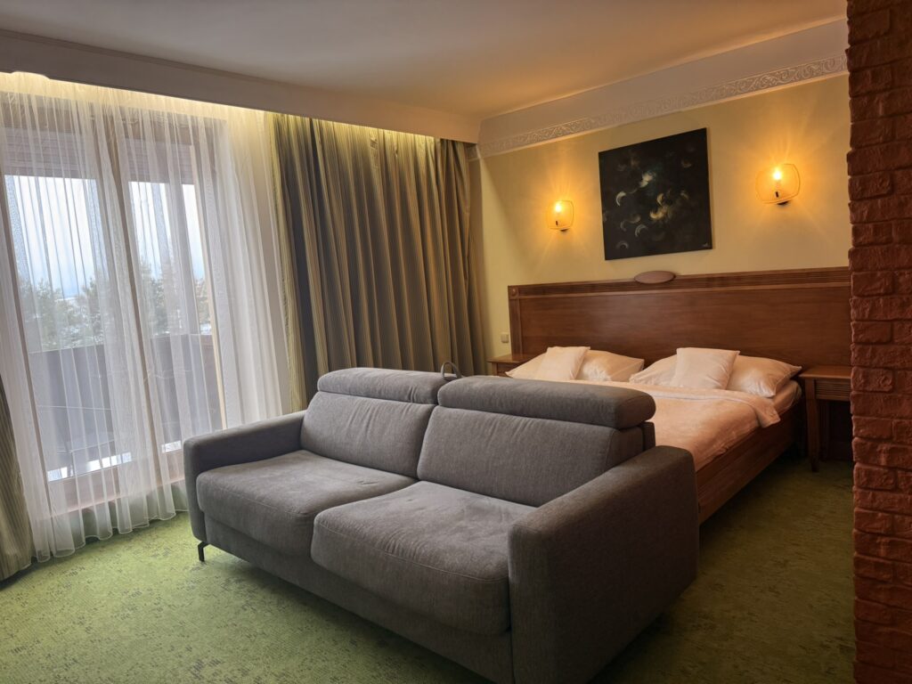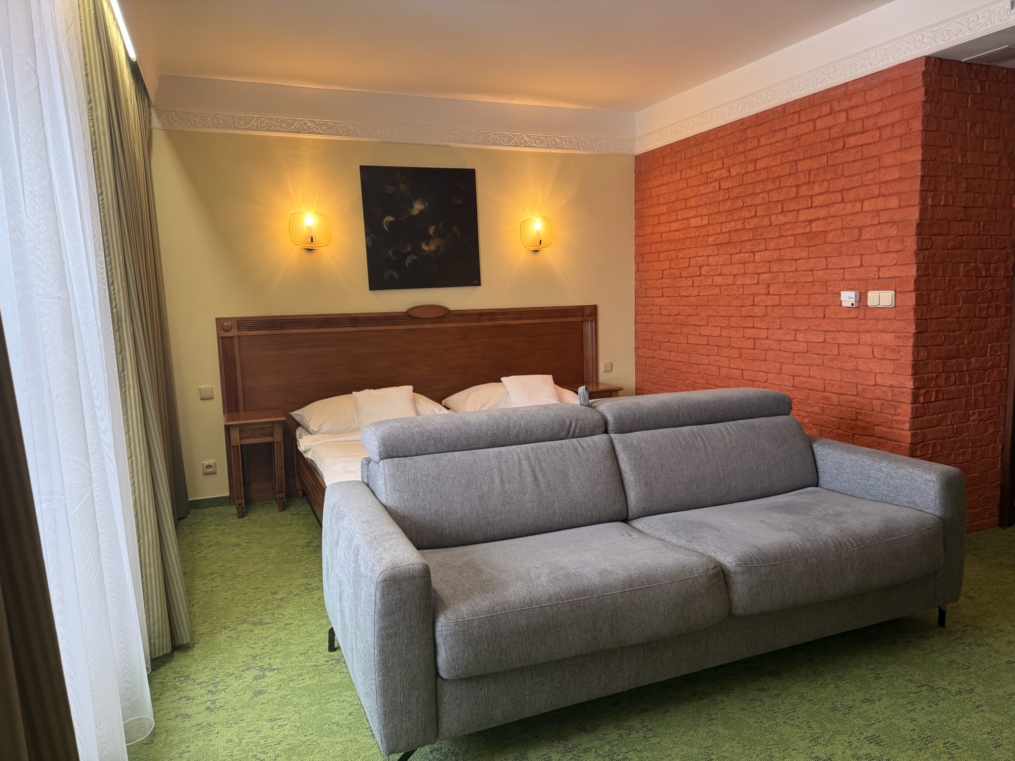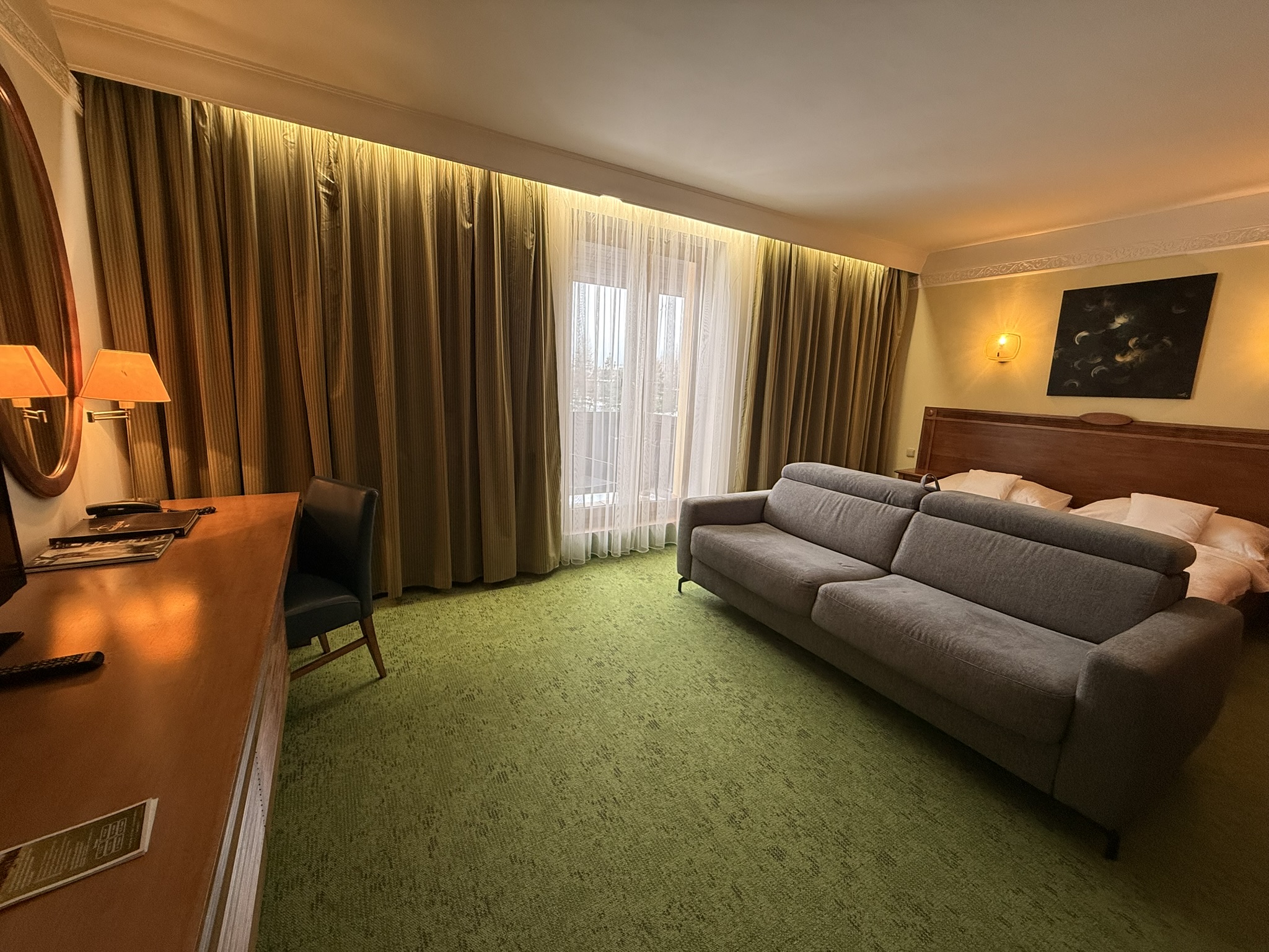 Dvojlôžková izba s manželskou posteľou. Izby sú vybavené TV príjmačom s rádiom a satelitným príjmom, telefónom, pripojením na internet, balkónom a minibarom a výhľadom na Tatry. Všetky izby sú nefajčiarske. Hostia majú k dispozícii raňajky formou bufetových stolov, bezplatné pripojenie na internet a bezplatné strážené parkovisko. Samozrejmosťou je neobmedzený vstup do wellness zóny.
